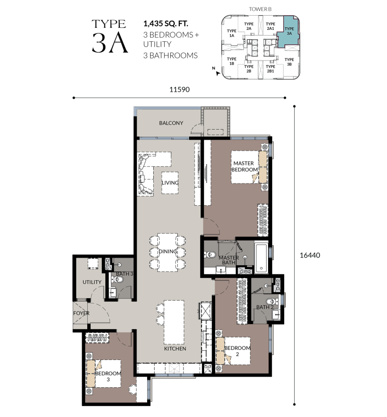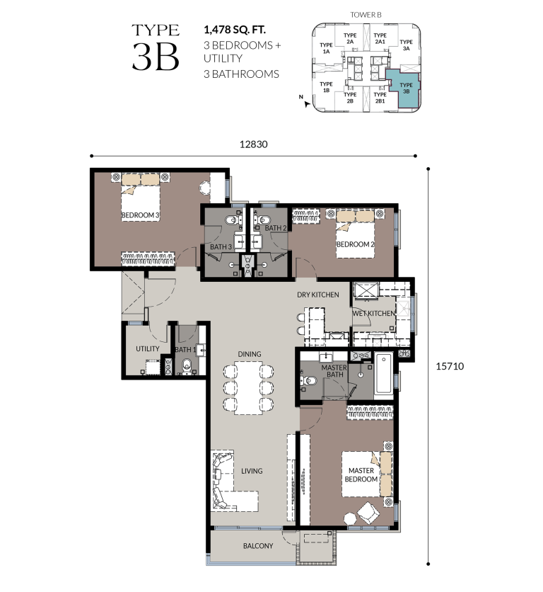 Large Units3-Bedroom Units, Sizes up to 1,200 sqft.